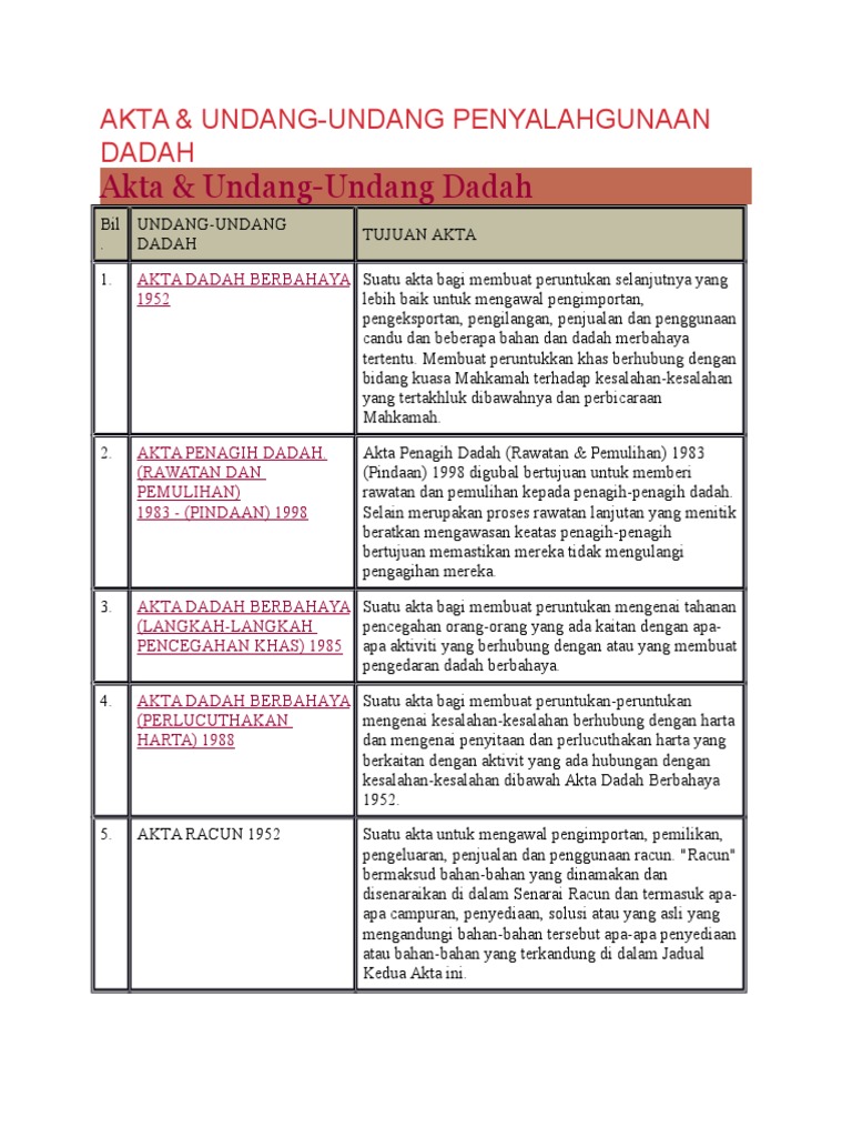 Akta Dan Undang Undang Dadah