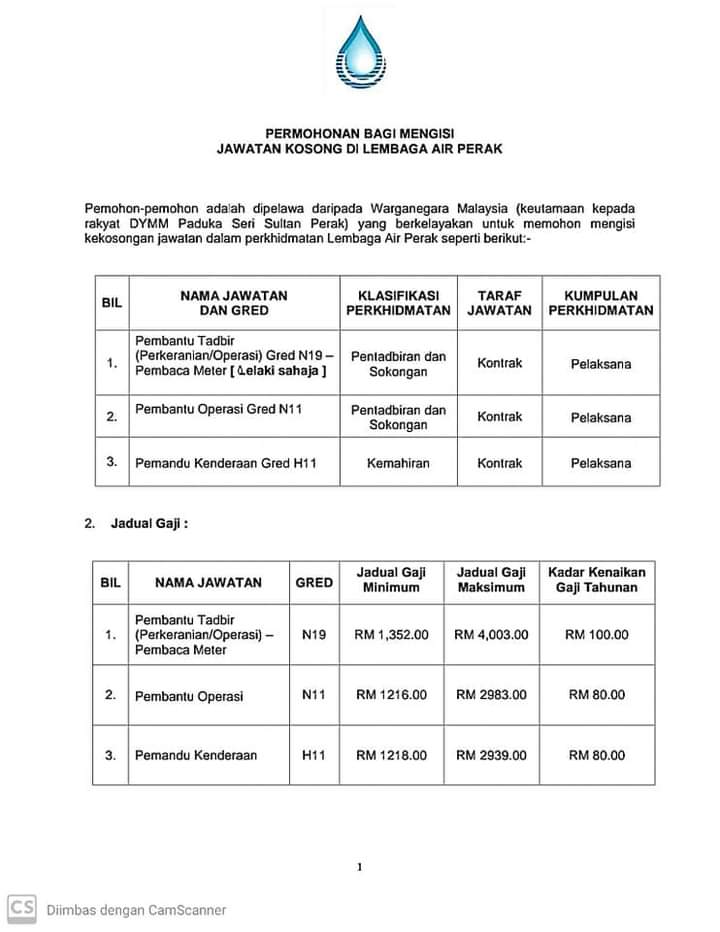 Jawatan Kosong Di Lembaga Air Perak Tarikh Tutup 06 Februari 2020 Jawatan Kosong Kerajaan 2020 Terkini