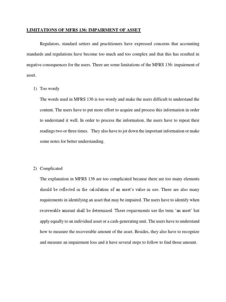 C37 Mfrs 136 Impairment Of Assets Mfrs 136 Impairment Of Assets Introduction Mfrs 136 Prescribes The Recognition Measurement And Disclosure Course Hero