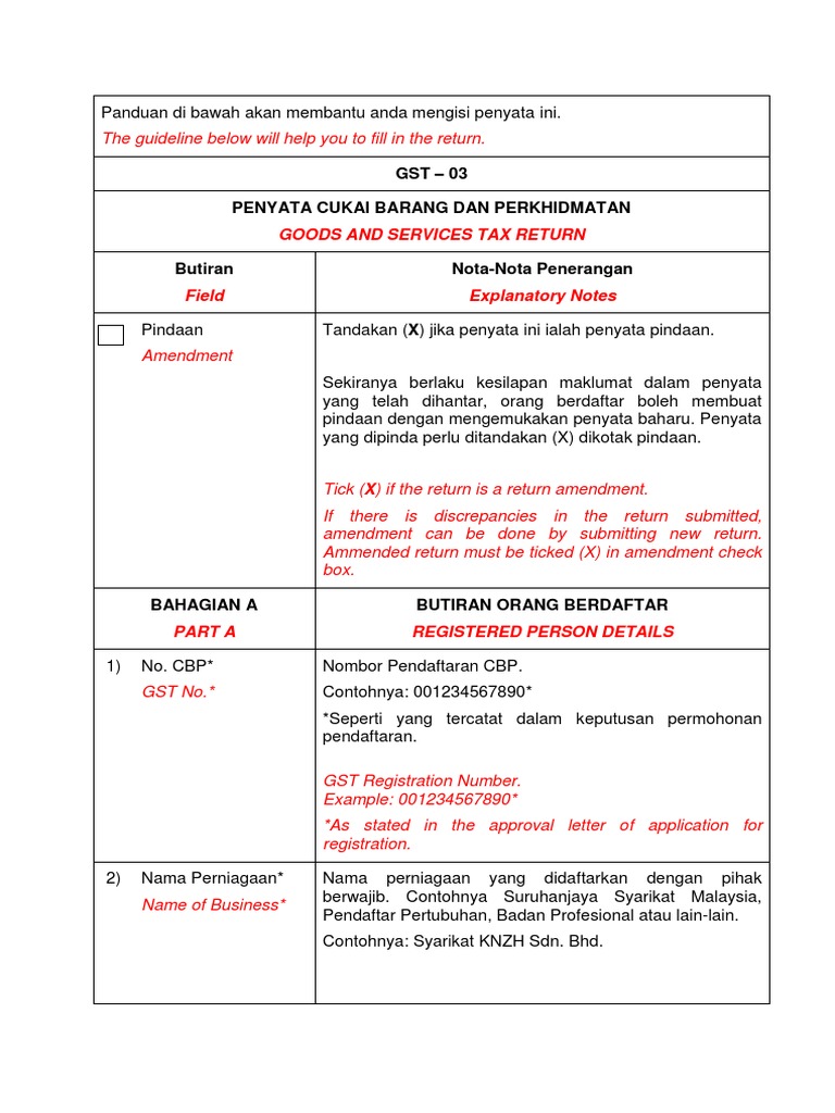 Panduan Mengisi Borang Gst 03 As At 30 Julai 2015