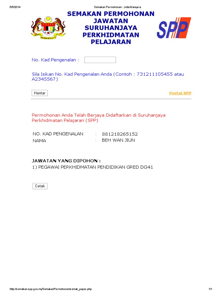 Semakan Panggilan Temuduga Spp 2020 Online Spa