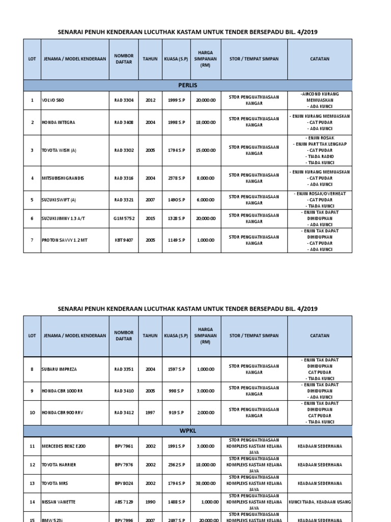 Http Www Customs Gov My En Documents Tender 20kenderaan 20lucuthak 20bil 204 2019 1 20 2010 20perlis Pdf