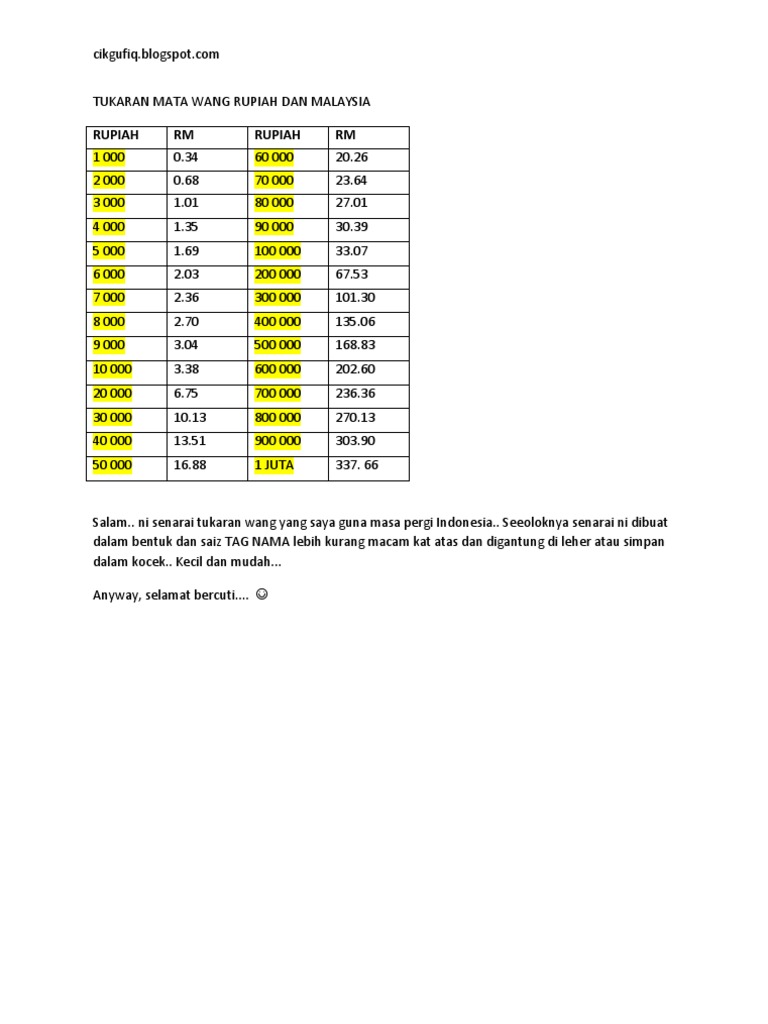 Tukaran Mata Wang Rupiah Dan Malaysia